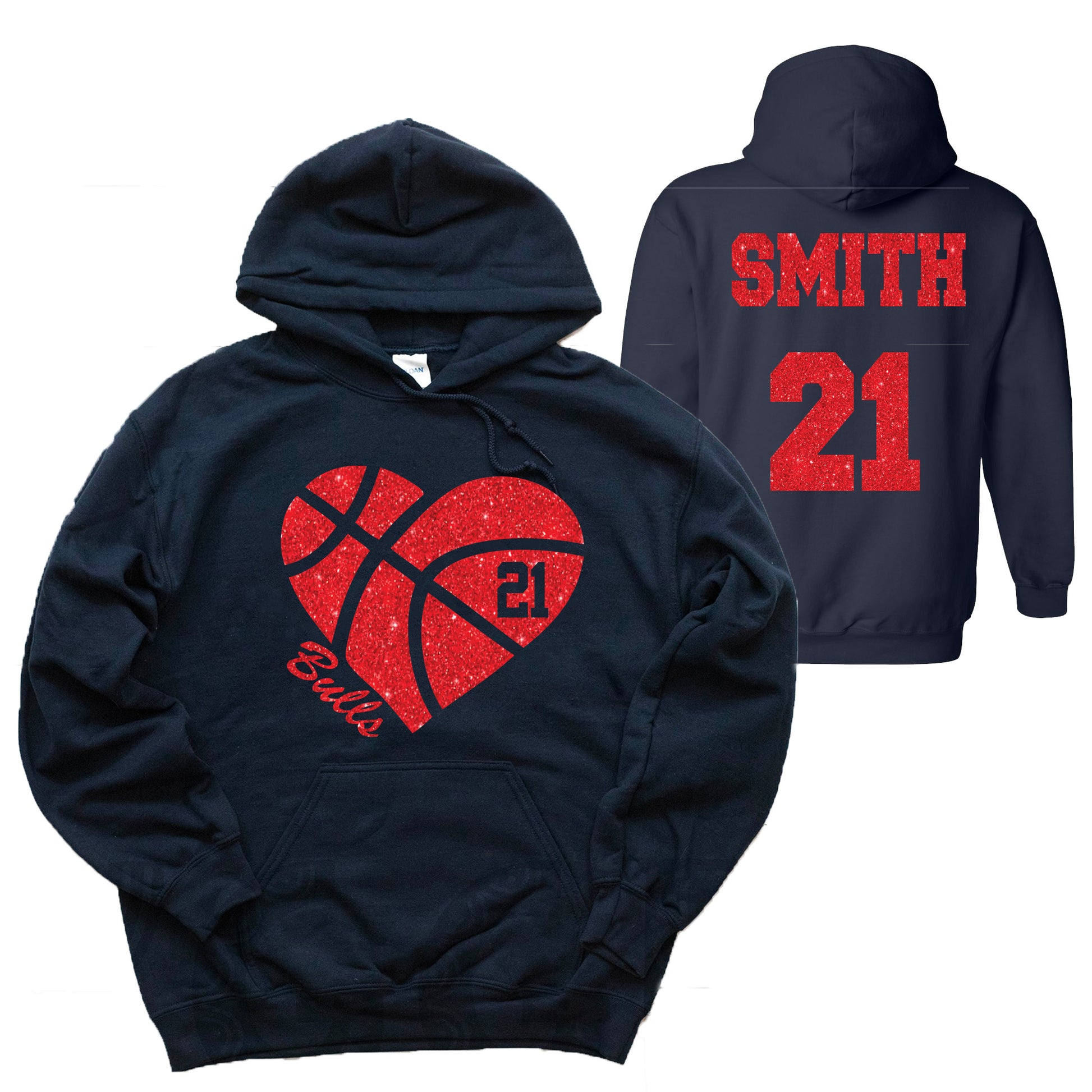 Basketball Heart Team Glitter Design Gildan Heavy Cotton Blend Hoodie Sweatshirt - 106.18500