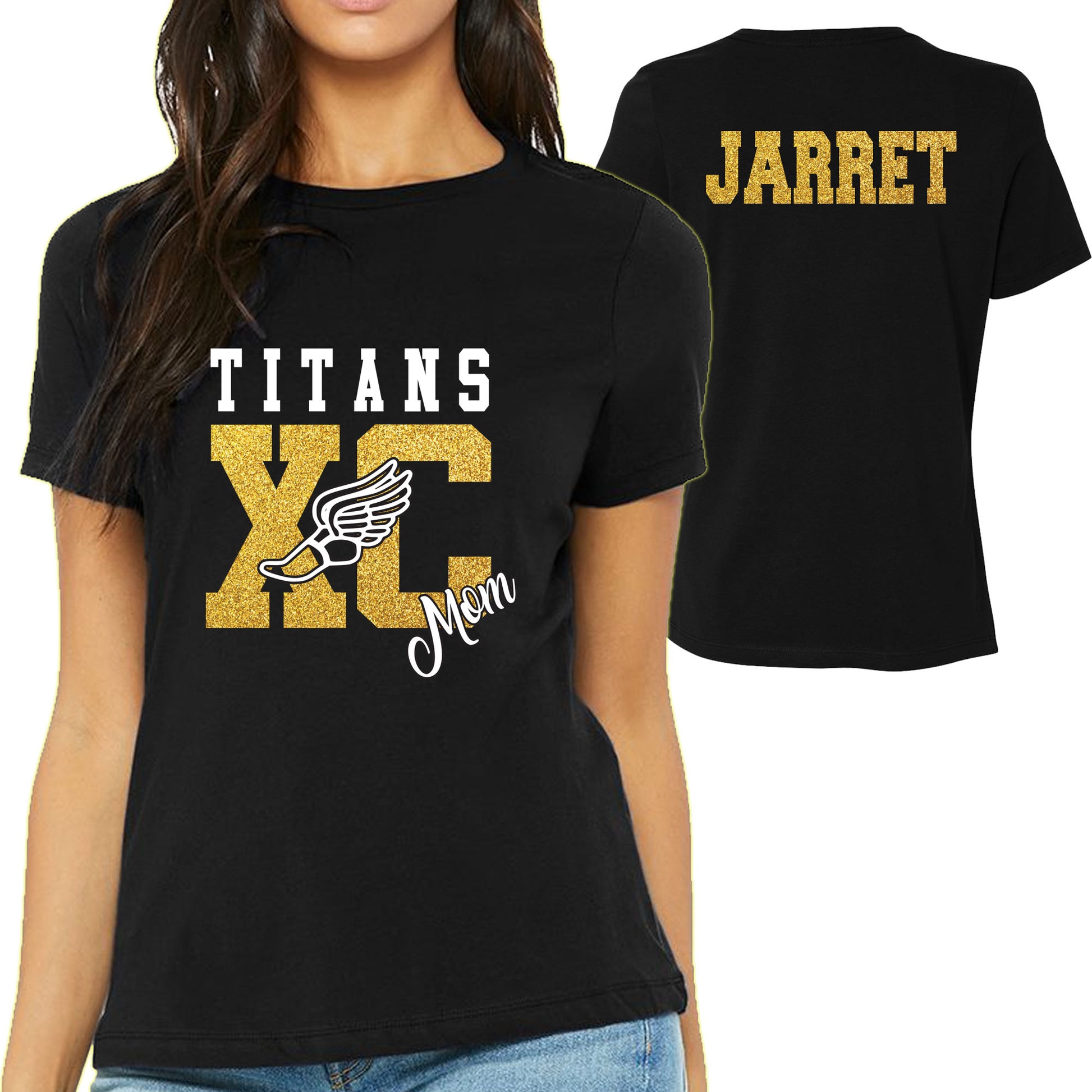 Cross Country Mom Design Personalized Glitter Design Women's Soft Bella + Canvas Jersey T Shirt - 6400