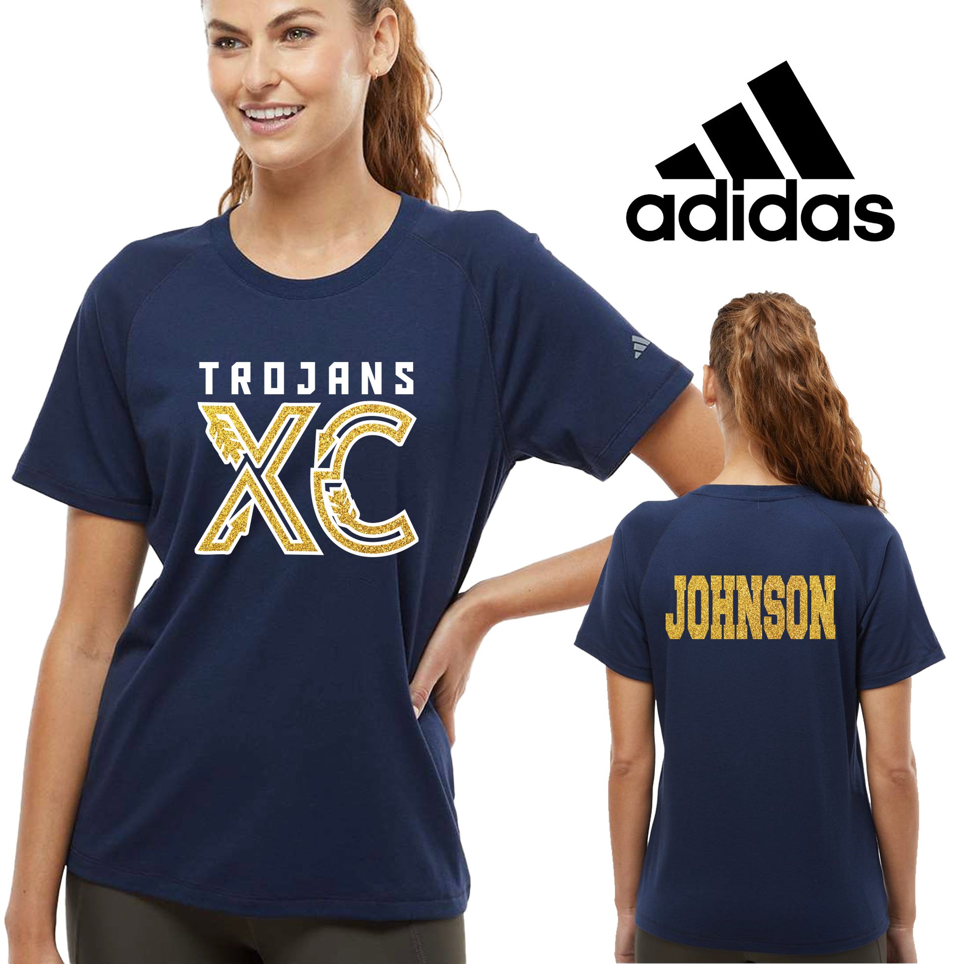 Cross Country Team Personalized Glitter Design Women's Adidas Cotton Blend T Shirt - 2.A557