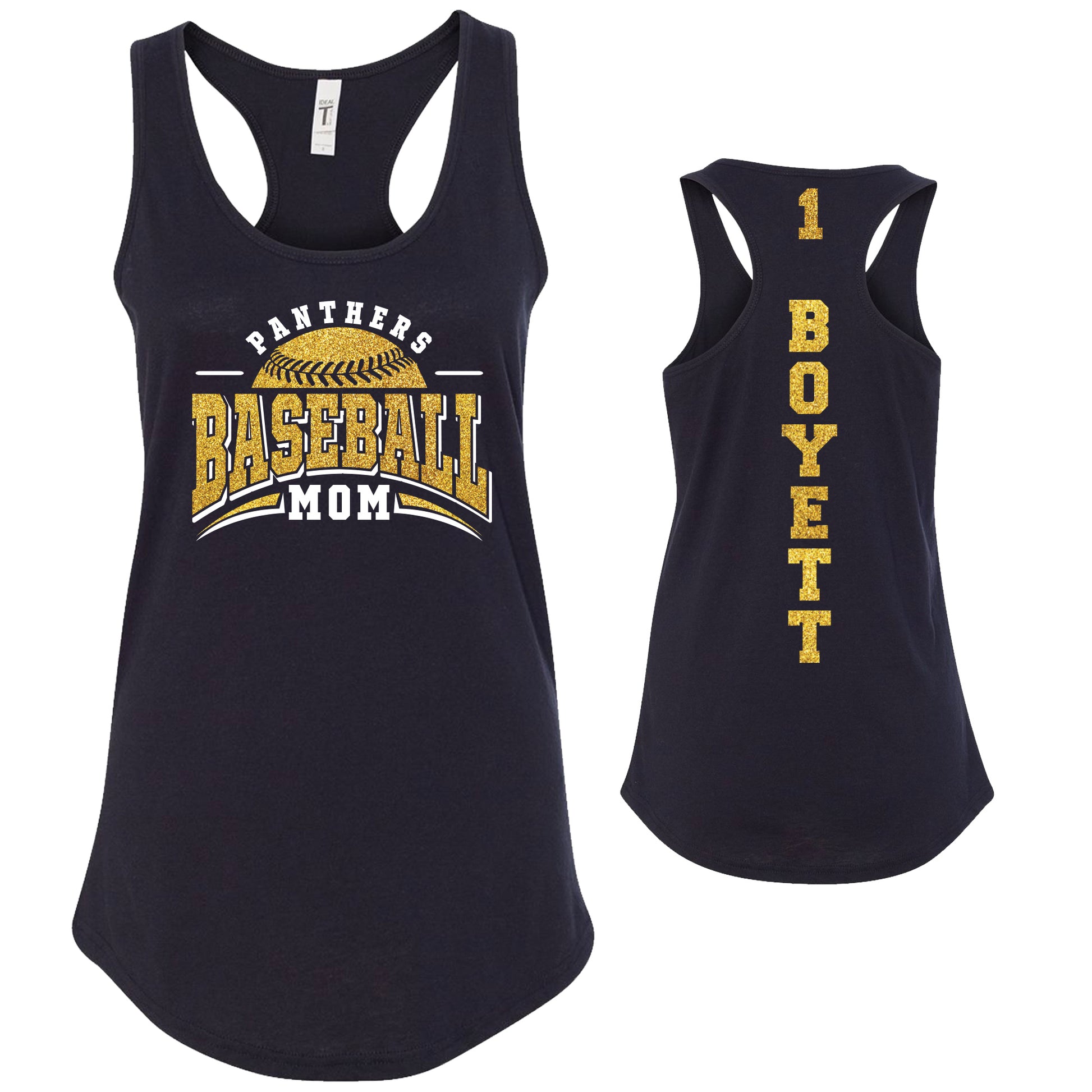 Custom Baseball Mom Glitter Deisgn Next Level Fitted Racerback Tank Top - 1533
