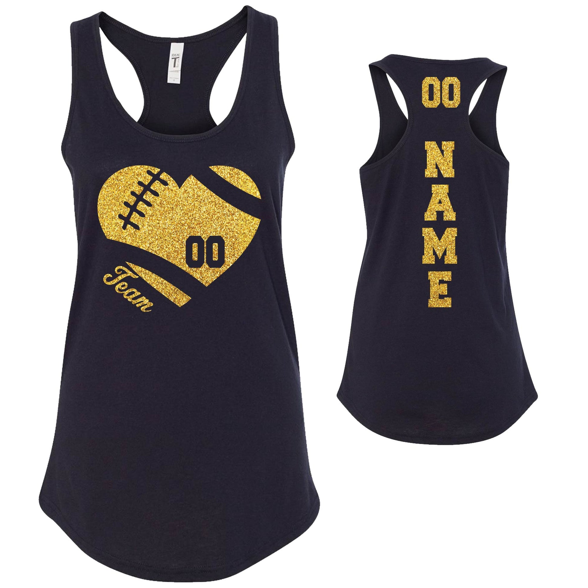 Custom Football Heart Glitter Deisgn Next Level Fitted Racerback Tank Top - 1533