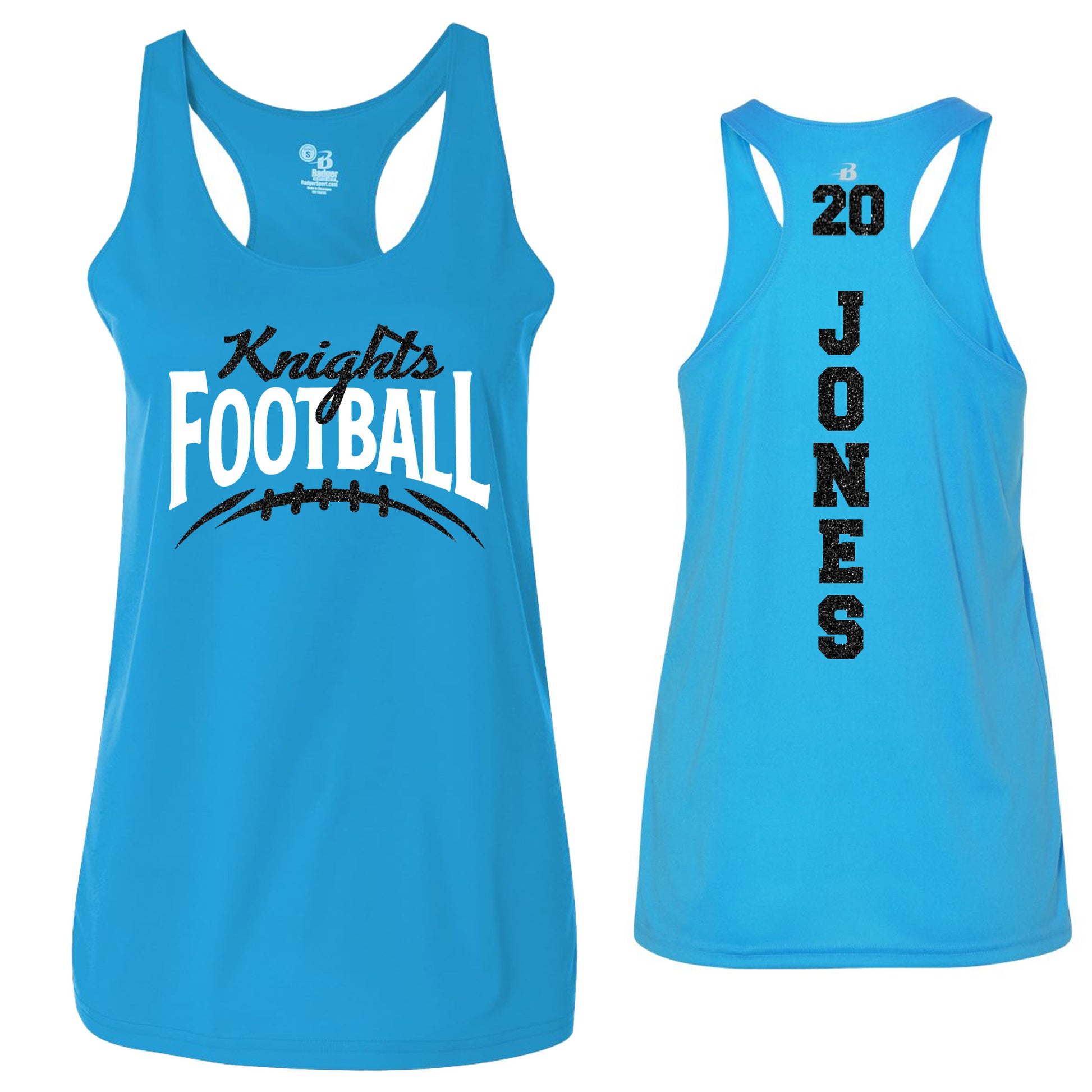 Amazing Custom, Dri-Fit Racerback Women's Tank Top by Badger. Badger is a leader in athletic and sports apparel. This fantastic Tank allows you to choose the color shirt, color glitter, and customize the team and player name & number.