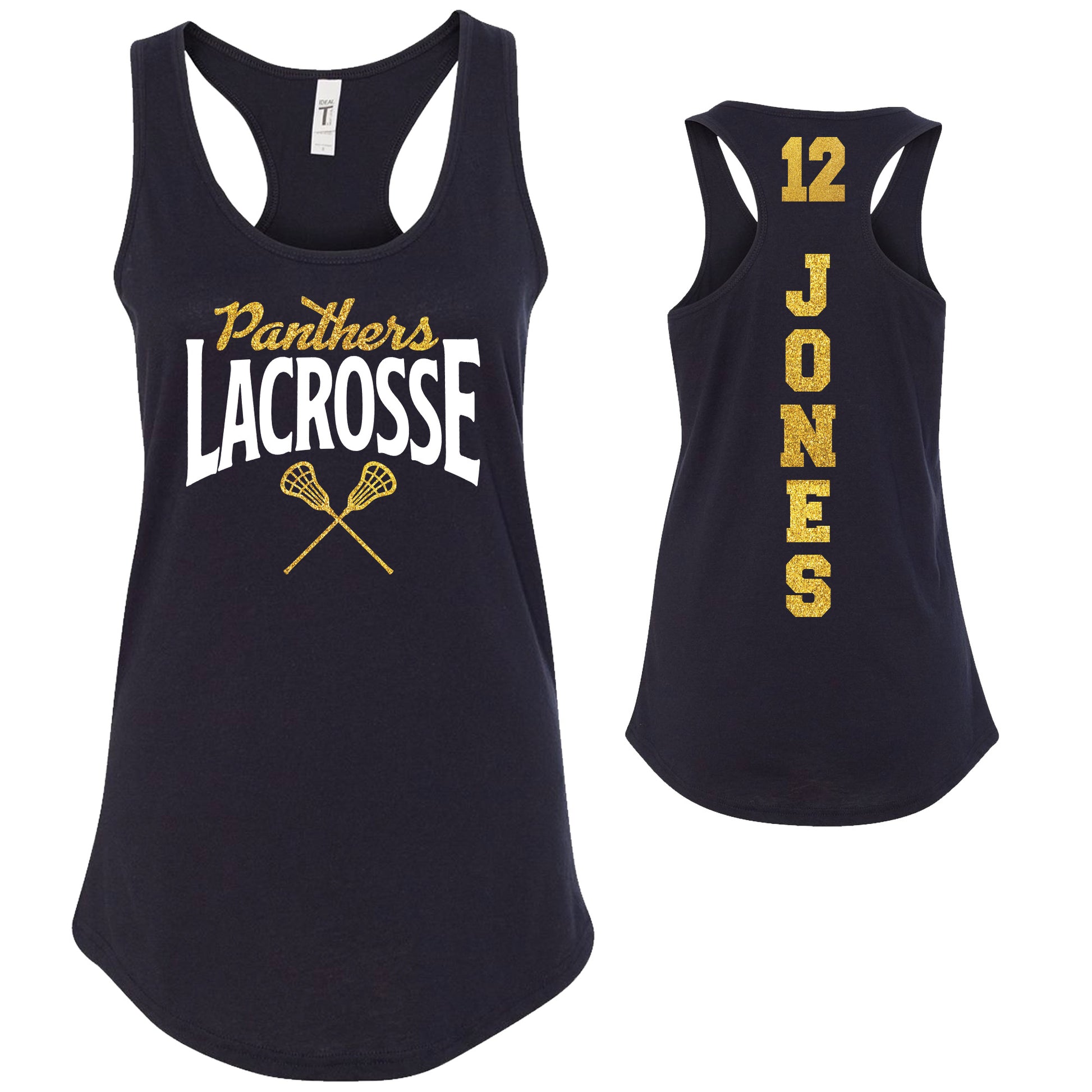 Custom Lacrosse Team Glitter Deisgn Next Level Fitted Racerback Tank Top - 10.1533