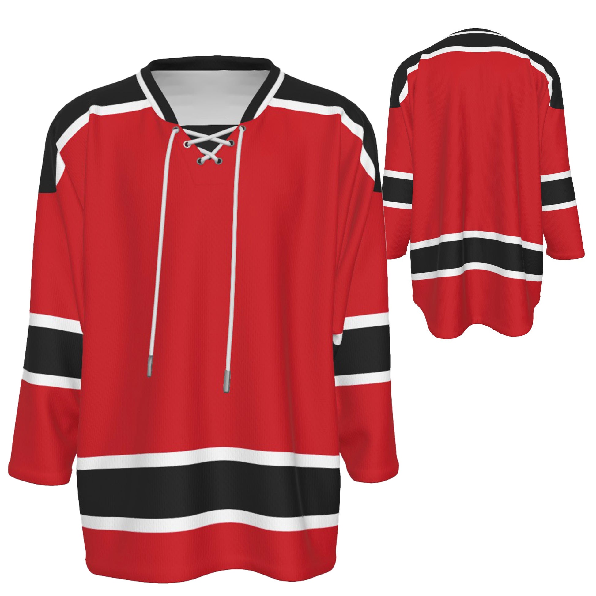 Custom Personalized Red and Black Team Hockey Jersey Shirt JS-11