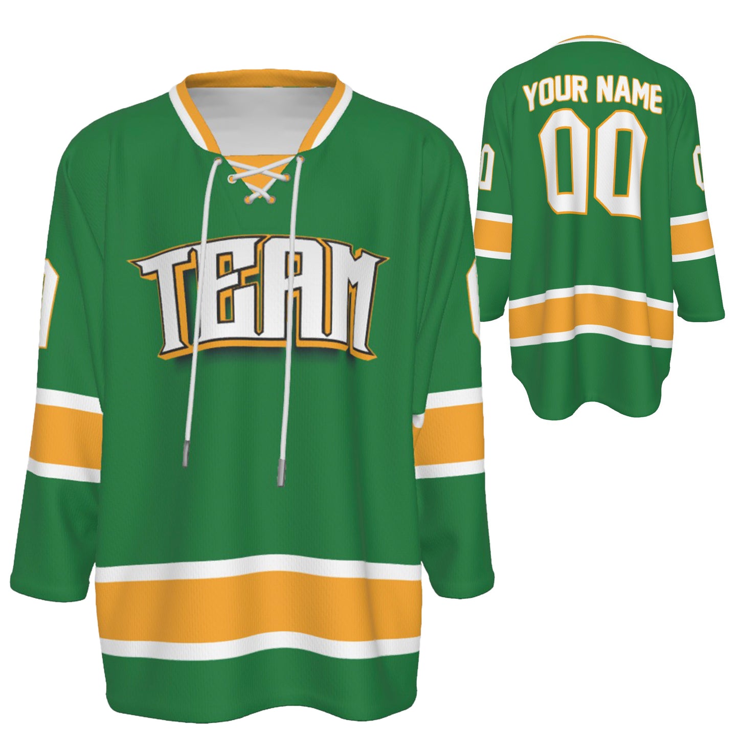 Custom Personalized Green and Yellow Gold Team Hockey Jersey Shirt JS-8
