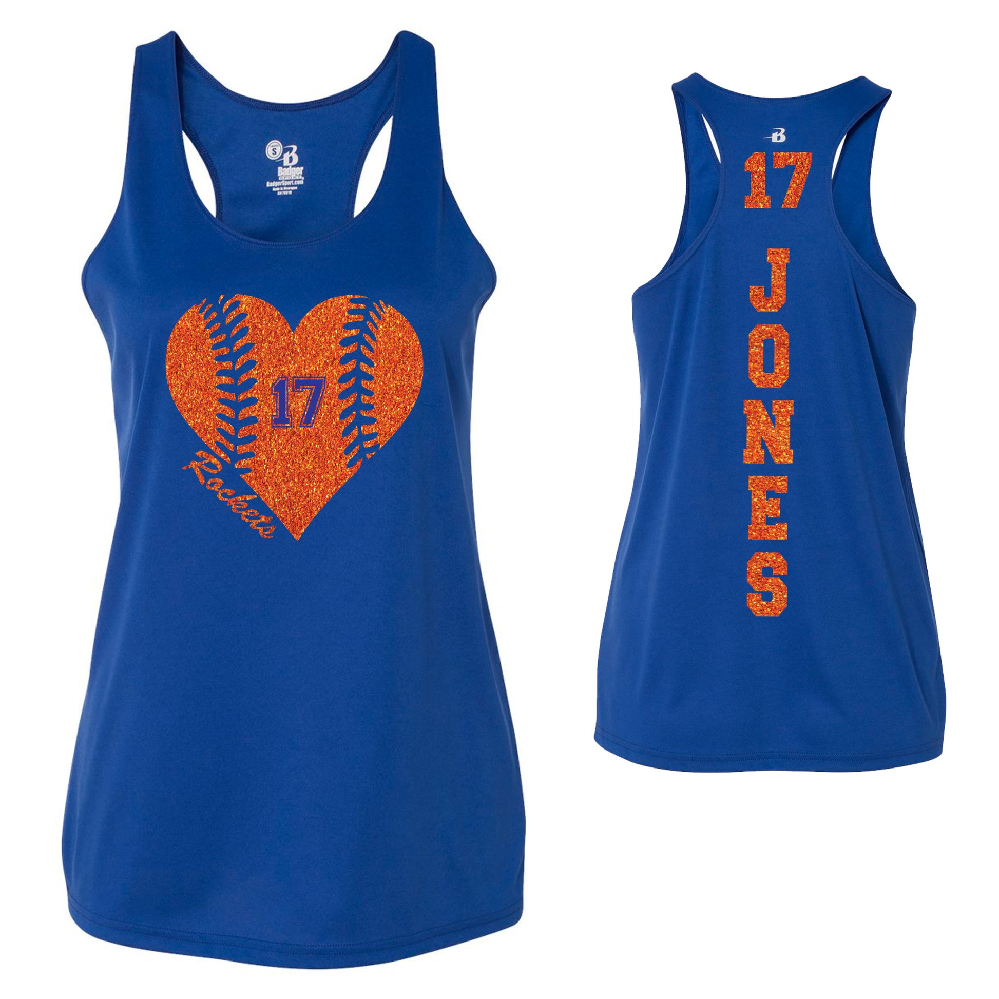Custom Softball Heart Glitter Design Badger DRI FIT Racerback Tank Top - 4166