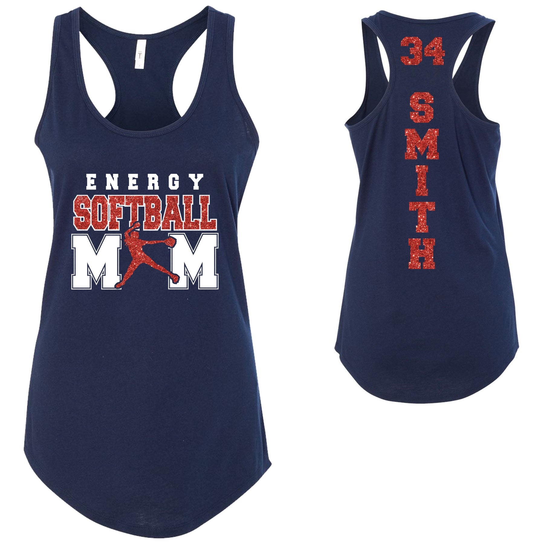 Custom Softball Mom Glitter Deisgn Next Level Fitted Racerback Tank Top - 3.1533