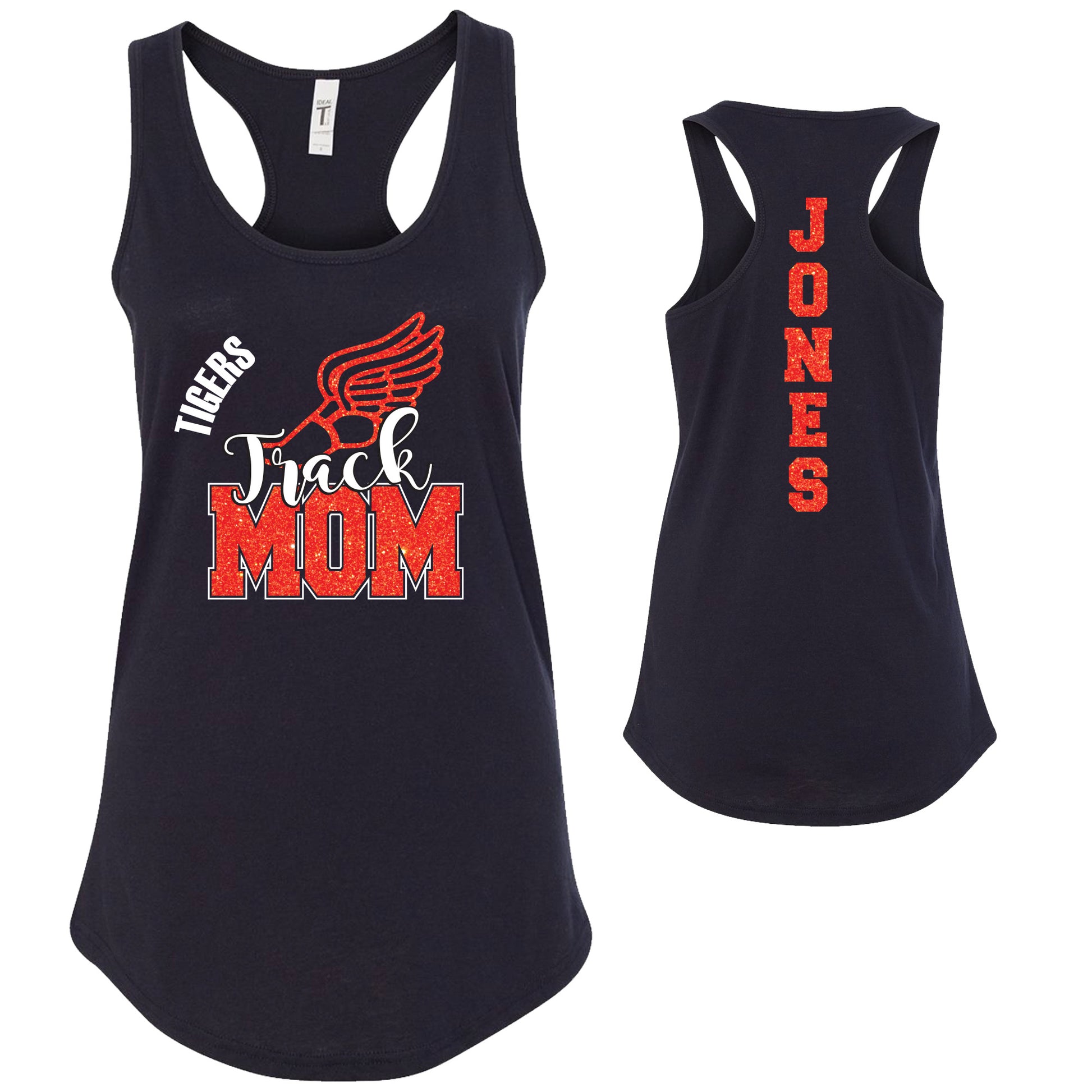 Custom Track Mom Glitter Deisgn Next Level Fitted Racerback Tank Top - 1533