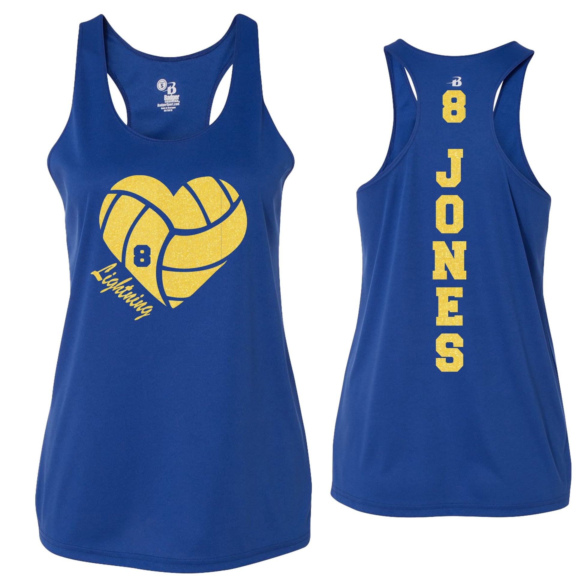 Custom Volleyball Heart Glitter Design Badger DRI FIT Racerback Tank Top - 4166