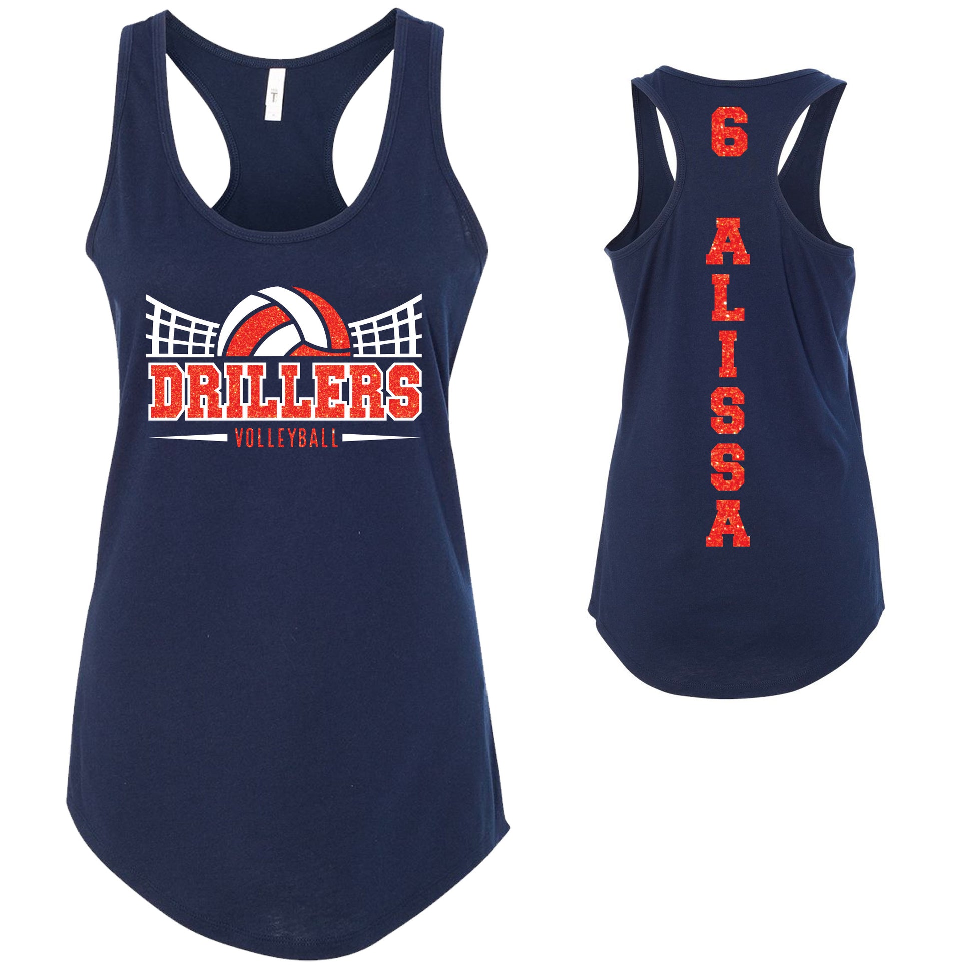 Custom Volleyball Team Glitter Design Next Level Fitted Racerback Tank Top - 1533