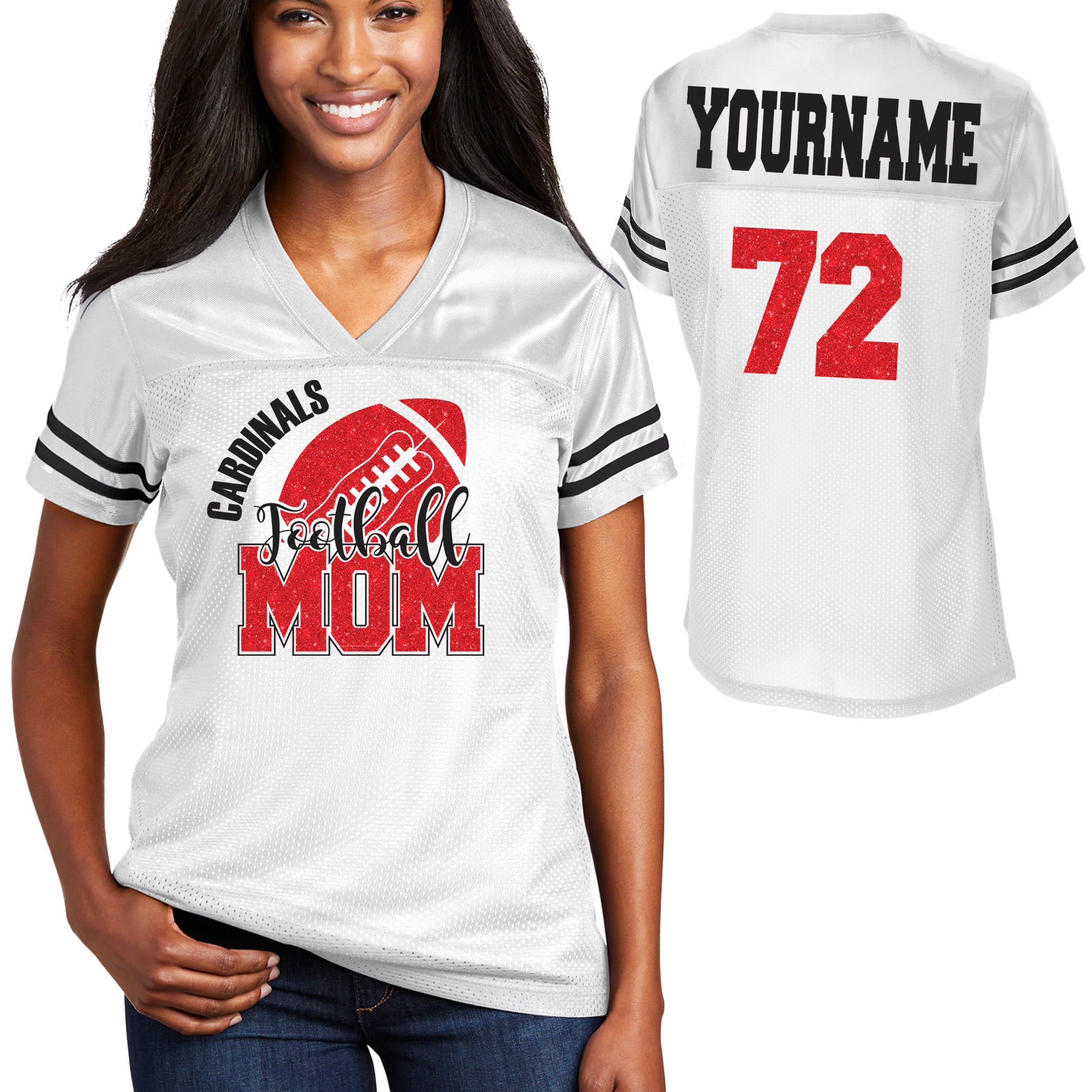 Football Mom Glitter Team Design Women's Sport-Tek Replica Football Jersey - LST307