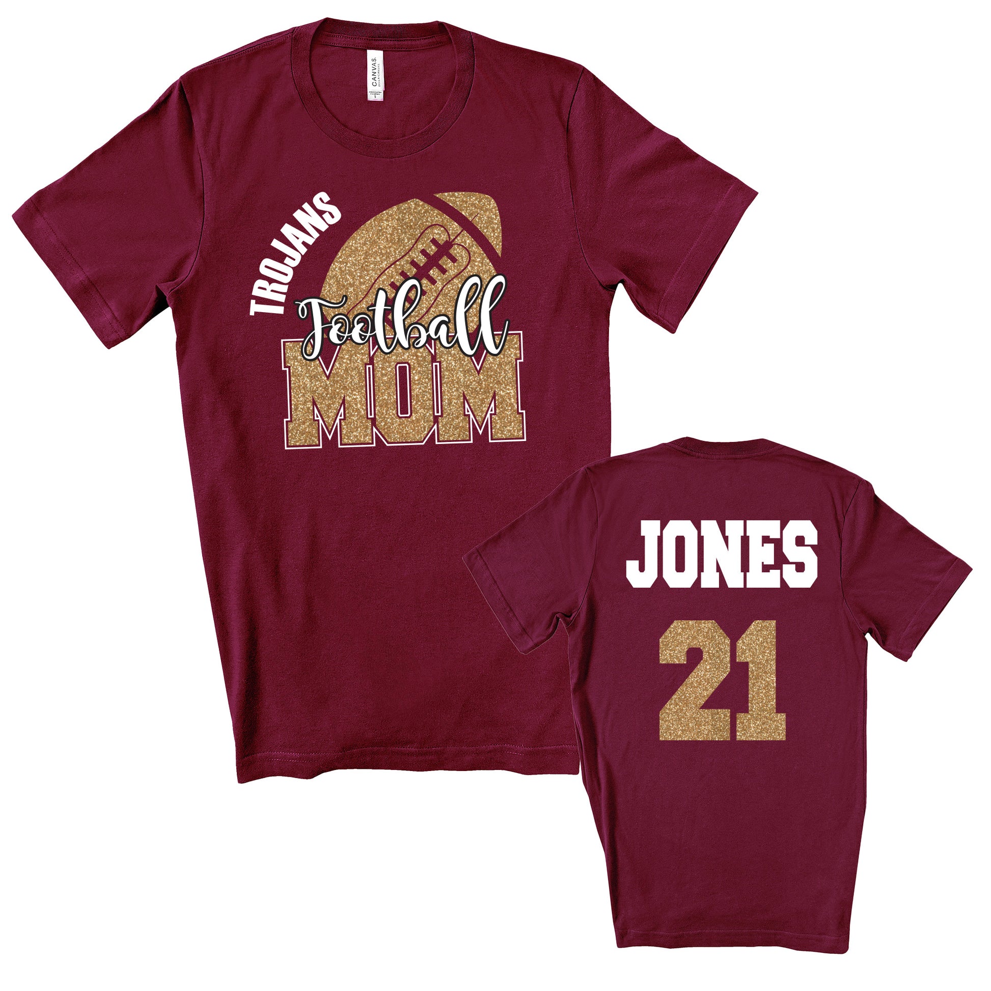 Football Mom Personalized Glitter Design Unisex Soft Bella + Canvas Jersey T Shirt - 3001