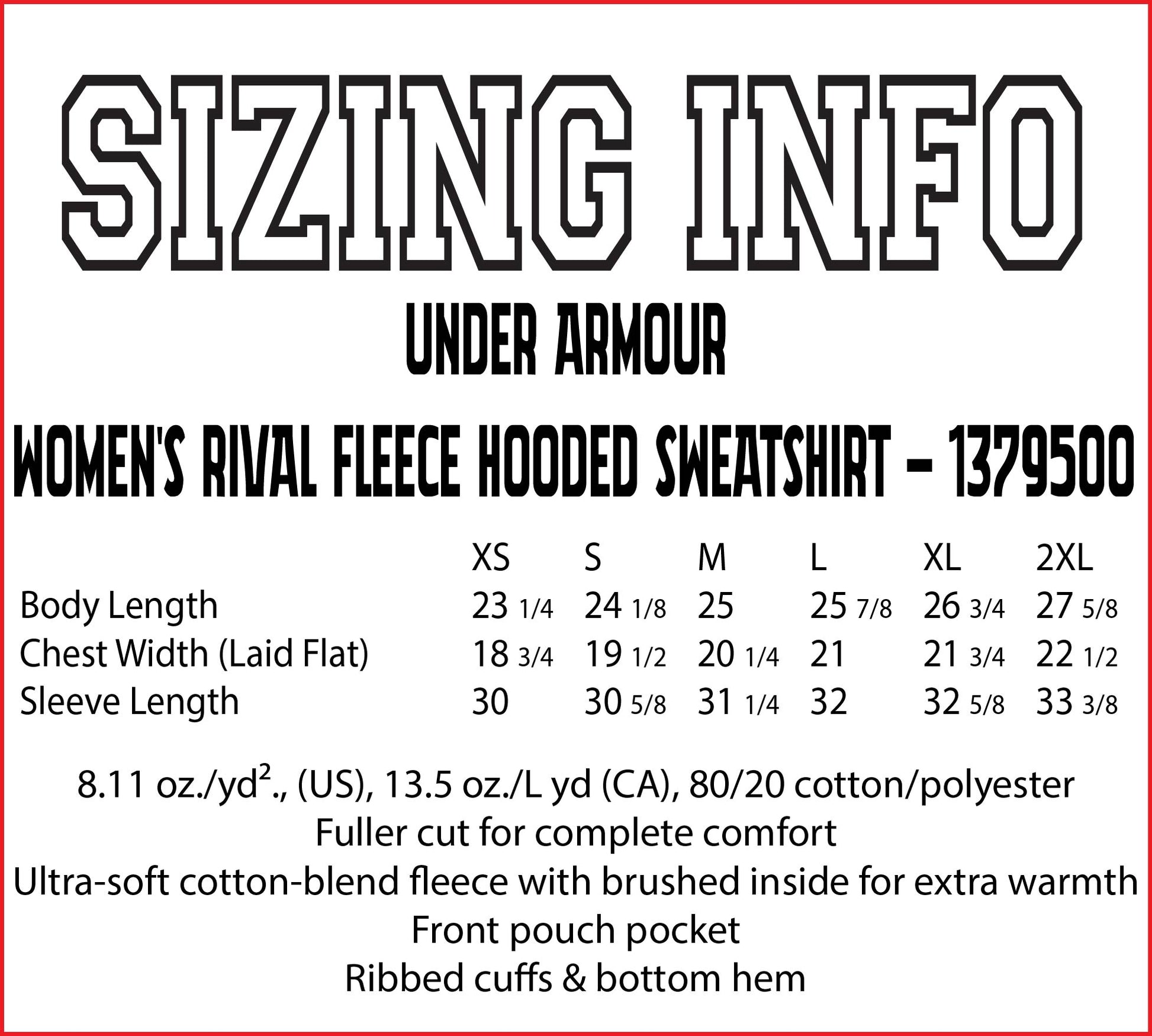 Amazing Custom, Women's Rival Fleece Hooded Sweatshirt by Under Armour. This fantastic hoodie allows you to choose the color shirt, color design, and customize the team and player name and number.