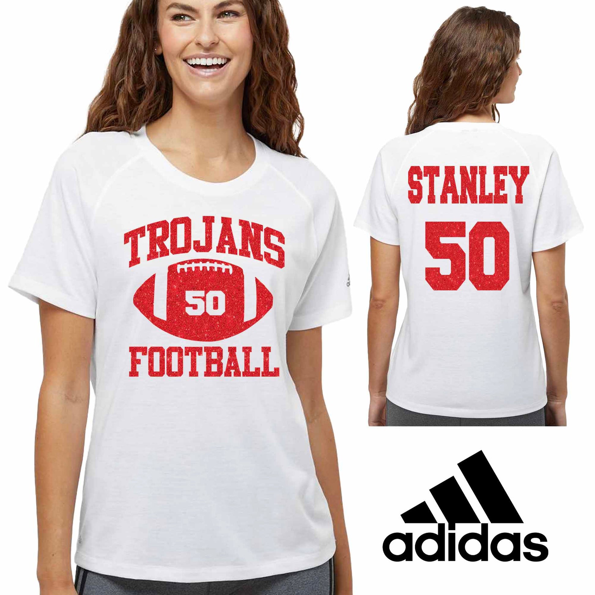 Football Team Personalized Glitter Design Women's Adidas Cotton Blend T Shirt - 3.A557