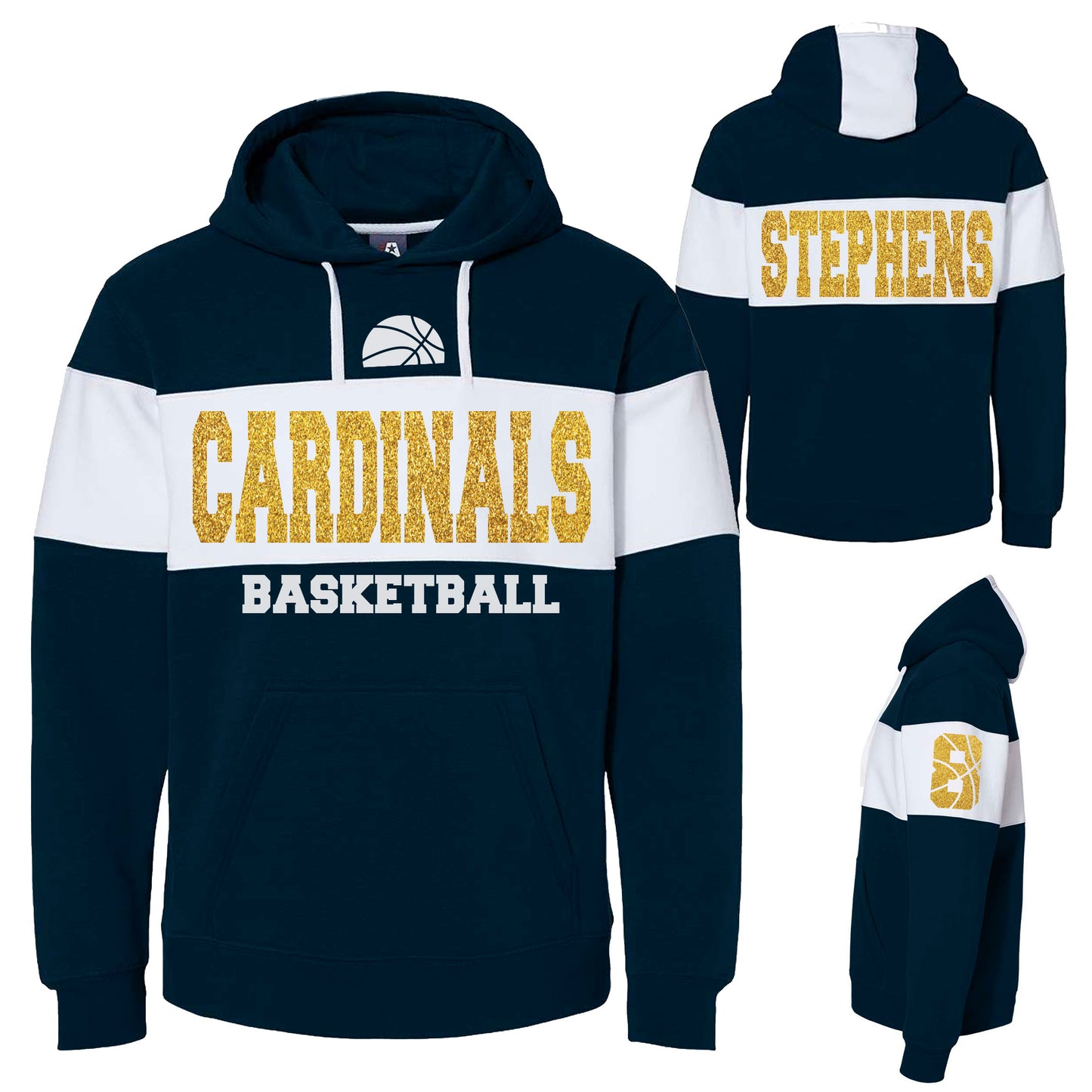 Glitter Basketball Design J. America Varsity Fleece Colorblocked Hoodie Sweater - 8644