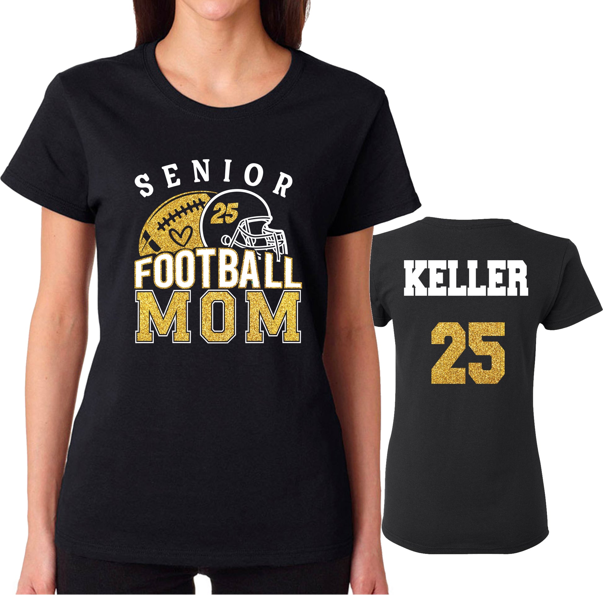 Senior Football Mom Glitter Team Design Women's Gildan Tee Shirt - 5000L