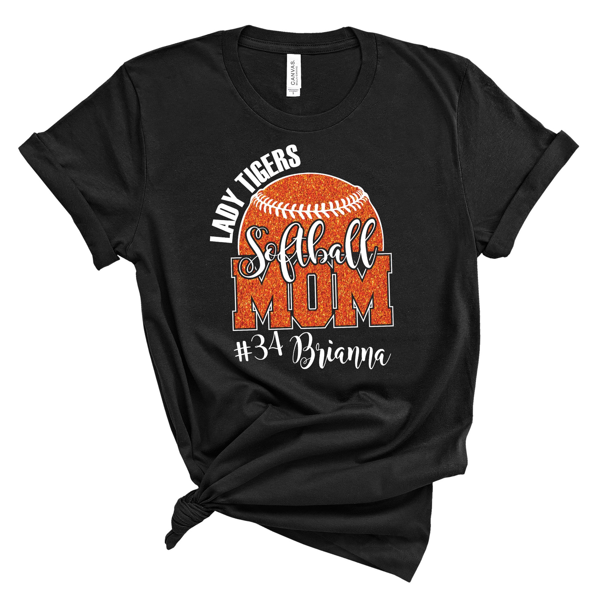 Softball Mom Personalized Glitter Design Unisex Soft Bella + Canvas Jersey T Shirt - 3001